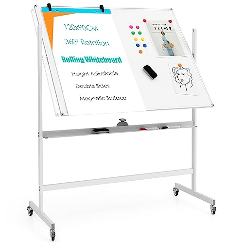Tableau Blanc Pivotant Magnétique Double Face 90 x 120 CM Al...