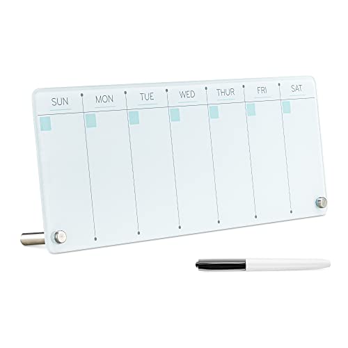 Navaris Tableau Blanc Verre Semaine 40.6 x 15.2 x 0.4 cm