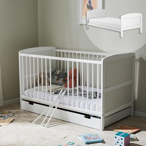 ✅ LIT DE BÉBÉ & LIT JUNIOR EN UN : Avec sommier à lattes ré...