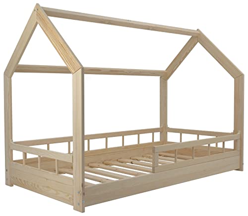 Velinda Lit Maison cabane en Bois de pin Naturel Brut avec b...