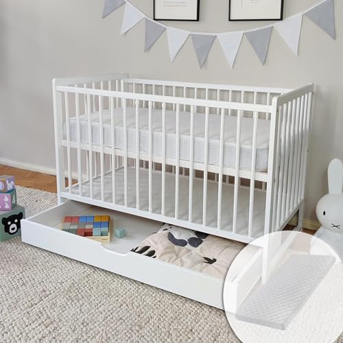 Lit bébé avec tiroir et barreaux réglables Hauteur 60x120, S...