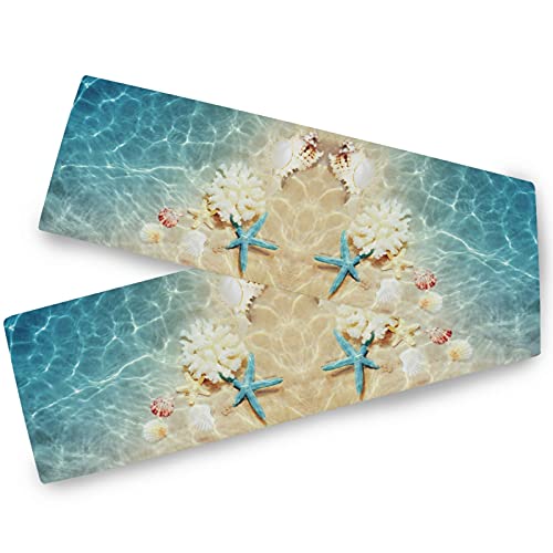 Chemin de table étoiles mer coquillages Bleu 33x228,6 cm