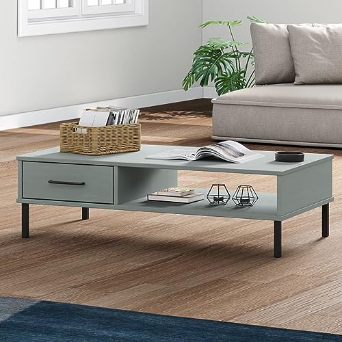 Table LZ Table Basse Gris, Structure Métal et Étagère Ouvert...