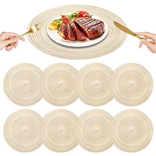 8 Sets de Tables Ronds Tressés Lavables Jaune, 36cm Coton Ré...