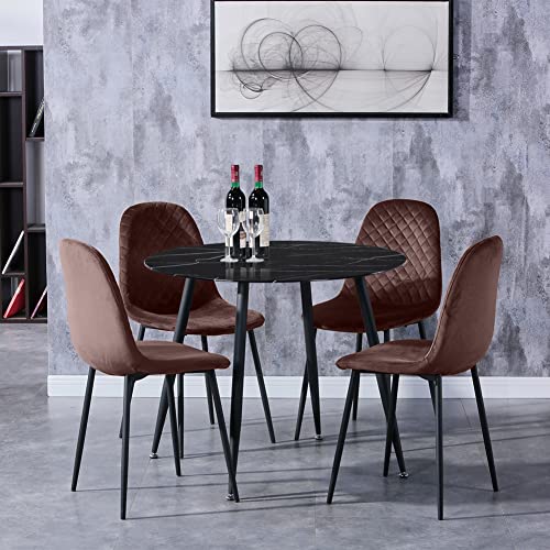 Table GOLDFAN 4 Chaises Rond Marbre Noir, Table de Cuisine N...