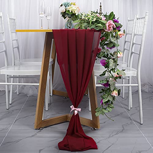 Contenu : 1 chemin de table en mousseline de soie bordeaux d...