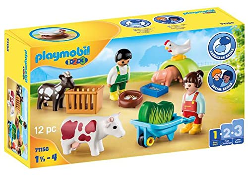 Playmobil 1.2.3 71158 Animaux de la Ferme - avec Deux Person...