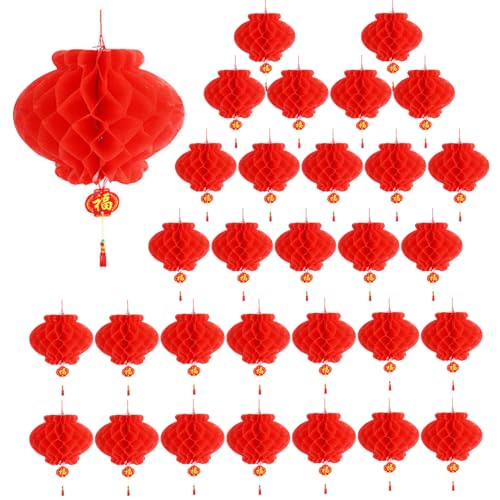 30 Pièces Lanterne Rouge en Papier, Lanterne en Papier en Pl...