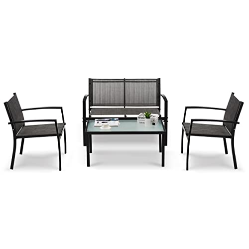 GolDFAN Table à Manger Ensemble 4 Chaises, Noir-Gris Marbre...