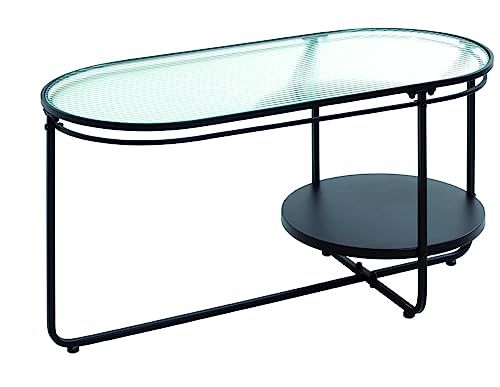 ARKEM Table Basse Verre Ovale Noir Brillant