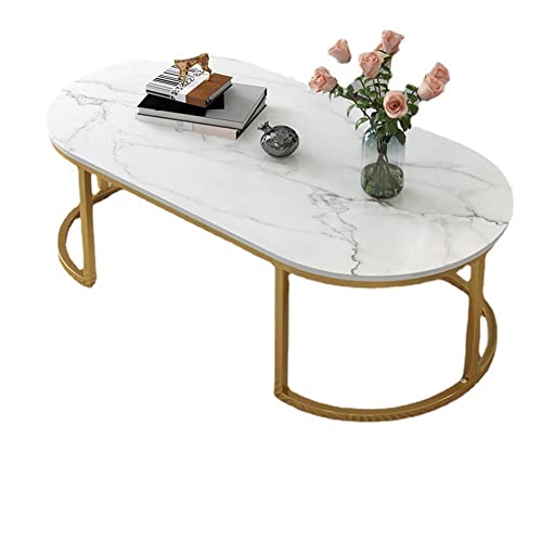 Nordique Basse Marbre, Table d'Appoint Métallique, Table Ova...