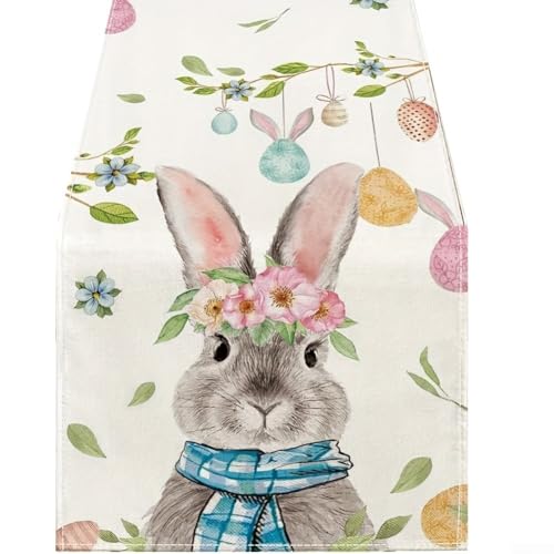 Chemin de table Pâques 2024, Lapin floral, Feuilles Pâques