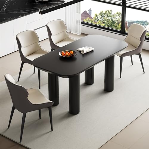 Table de salle à manger 63 po, robuste, noire, avec chaises,...