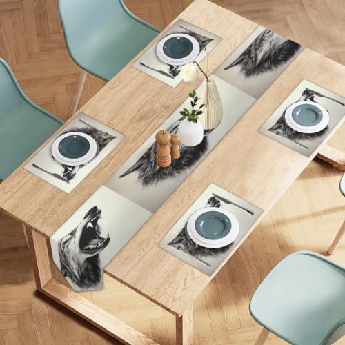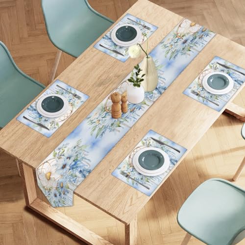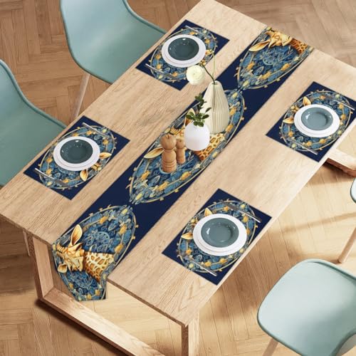 Lot de 4 chemins de table et sets de table en lin à isolatio...