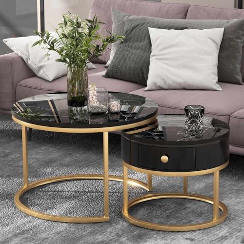 KOMH Lot de 2 tables basses rondes noires, espace rangement