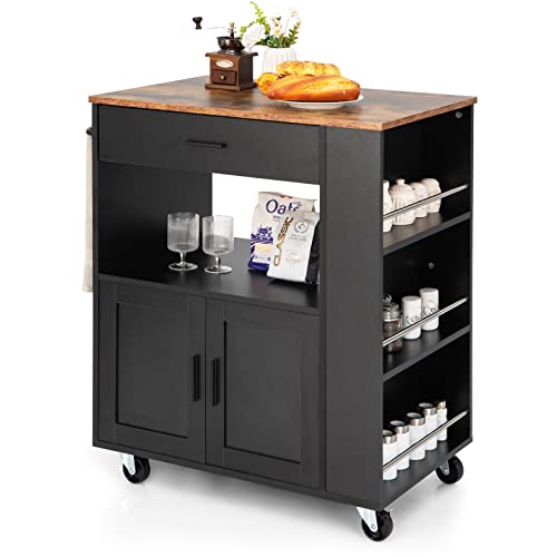 Desserte Îlot de Cuisine à Roulettes et Support à Épices