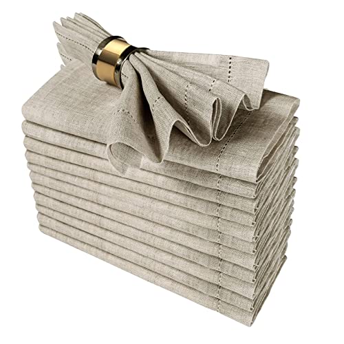 Serviettes de table 100 \\\\% pur lin naturel (lot de 12). S...