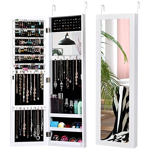 COSTWAY Armoire à Bijoux Murale/Suspendue 2 en 1 avec Miroir...