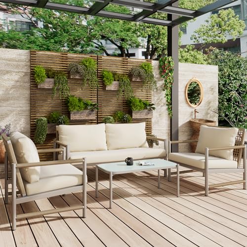 HAUSPROFI Salon de jardin 4 pièces résistant aux intempéries...