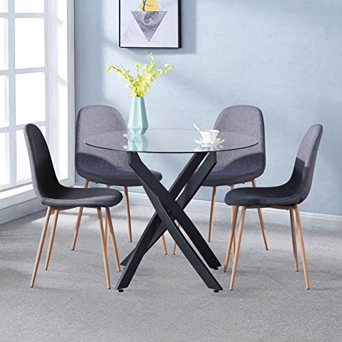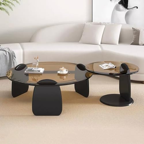 UIHECTA Table Basse Ronde Verre, Table Moderne Naturel Bois,...