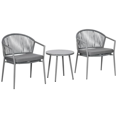 Salon de Jardin Bistrot Outsunny 3 Pièces Acier Fauteuils +...