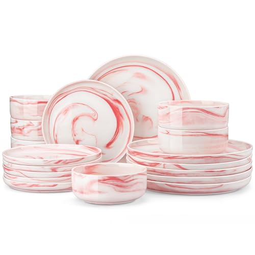 MALACASA Série LUNA Service de Table Rose Porcelaine 6 Perso...