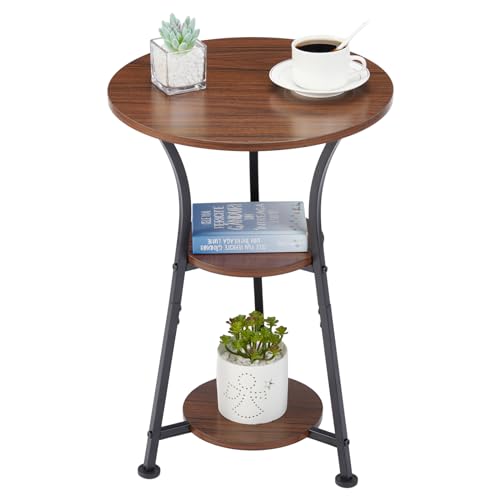 Petite table d''appoint ronde avec 3 étagères de rangement p...