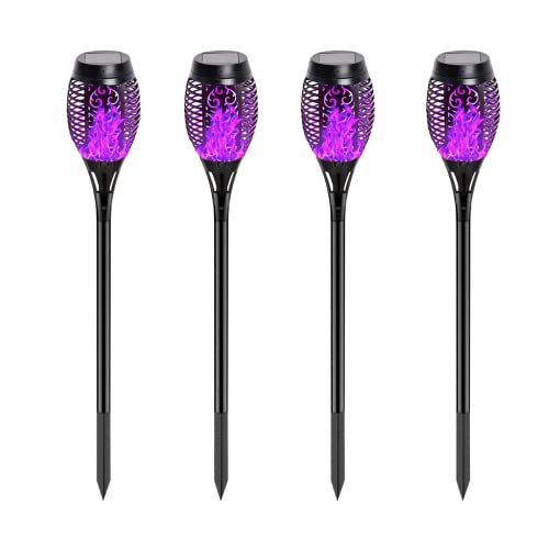 Lot de 4 lampes solaires extérieures flamboyantes, automatiq...