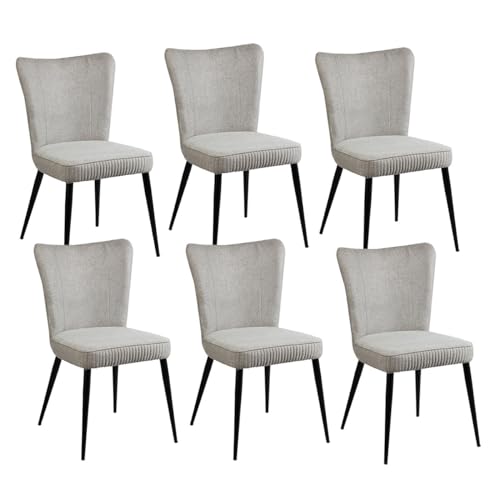 Lot de 6 Chaises Tissu Gris Clair Chiné Pieds Métal Noir Mat...