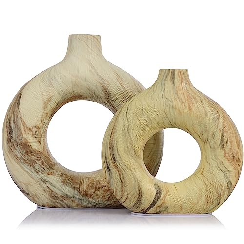 Lot de 2 vases en céramique - Vase rond en forme de beignet...
