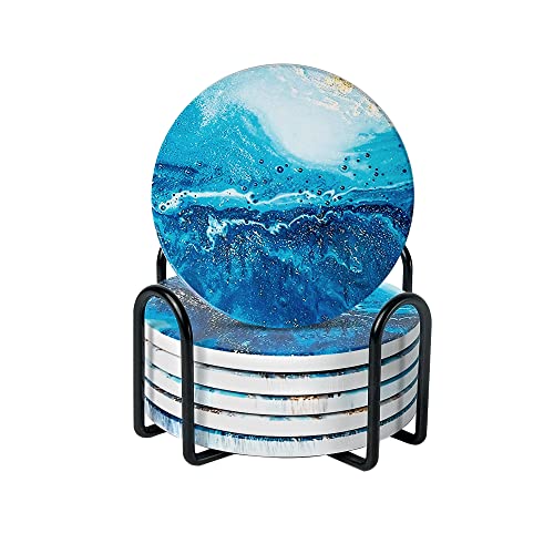 Lot de 6 dessous de verre ronds avec support en céramique ab...