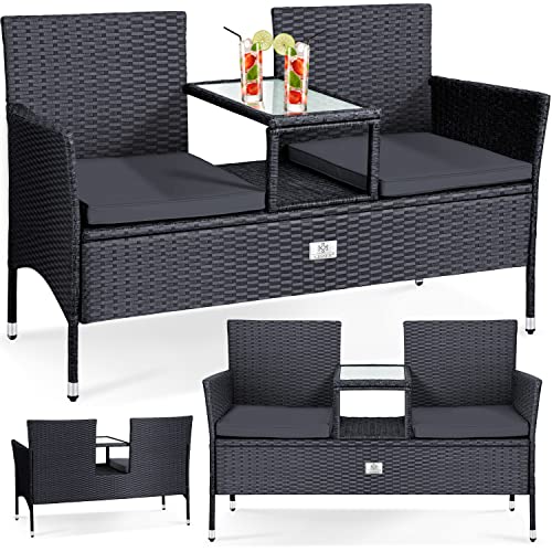 KESSER® Banc de jardin 2 places en polyrotin avec table et c...
