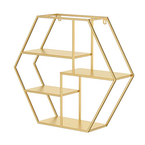 Yumyolk Étagère Salle de Bain Métal Or Hexagone