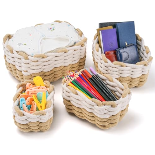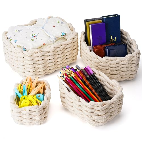Lannvan Rangement 4 Paniers Tissé Corde Blanc