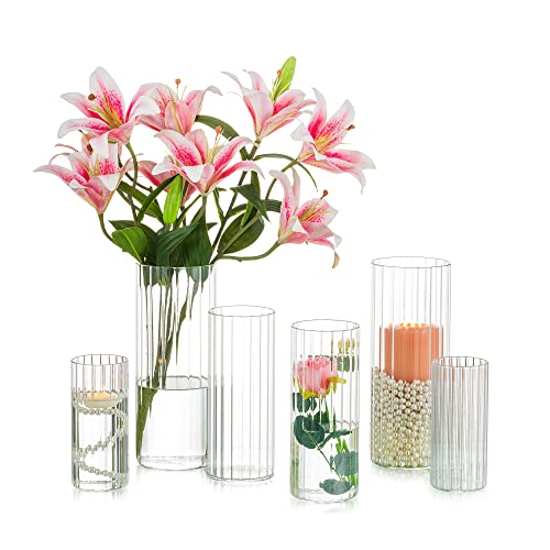 Inweder Lot de 6 grands vases cylindriques en verre transpar...