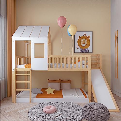 Lit mezzanine Sweiko 90x200 cm avec échelle et toboggan, lit...