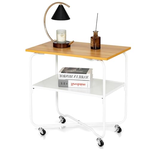 HOMASIS Table d''appoint avec roulettes, chariot de service...