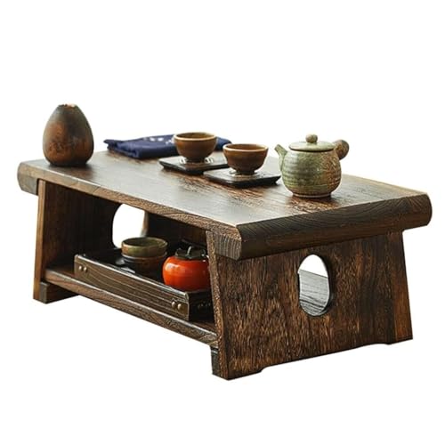 Table basse pliante bois vintage, 2 couches, support rangeme...