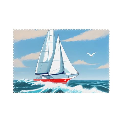 YYHWHJDE Lot de 6 sets de table motif mouette et voilier - M...