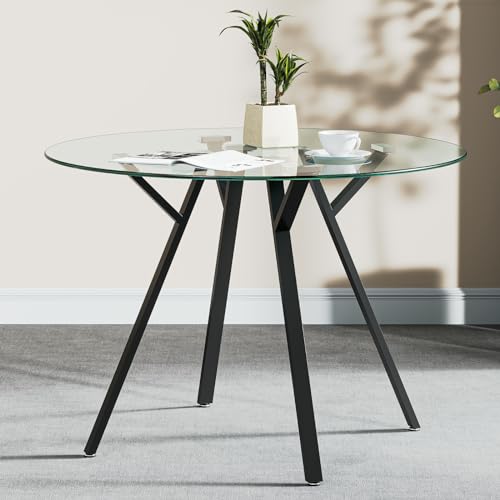 GolDFAN Table Rond Verre Trempé 80cm Design Moderne