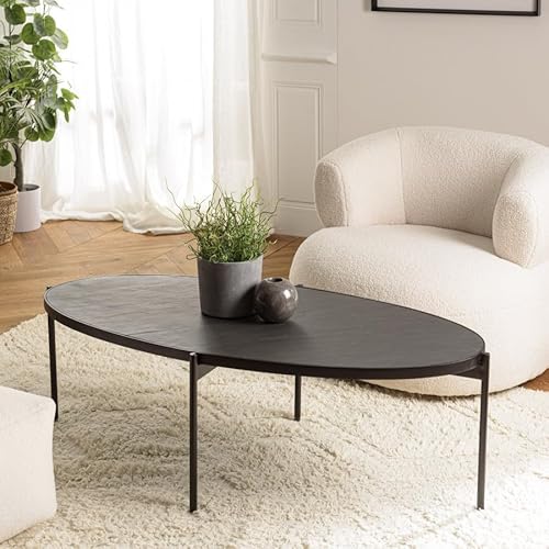MACABANE Basile Table Basse Ovale 131x65cm Noir Effet Pierre