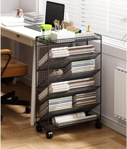 Chariot de bibliothèque à 6 niveaux en métal à roulettes ave...