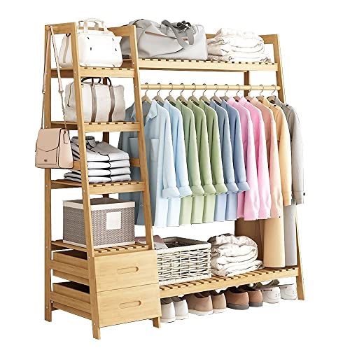 Portant Penderie à Vêtements en Bambou, Armoire Ouverte Pend...
