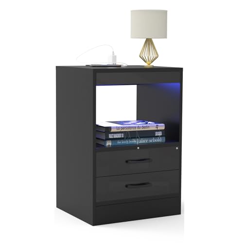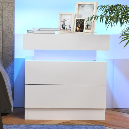 Table de Chevet LED, Table de Nuit à 2 Tiroirs, Couvercle Ra...