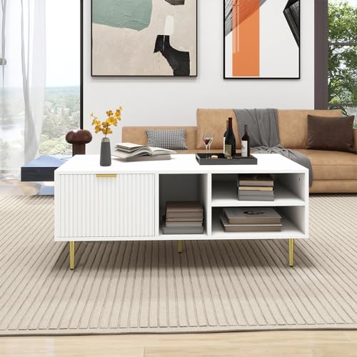 HUMZGHG Table basse avec un tiroir et 3 compartiments, armoi...
