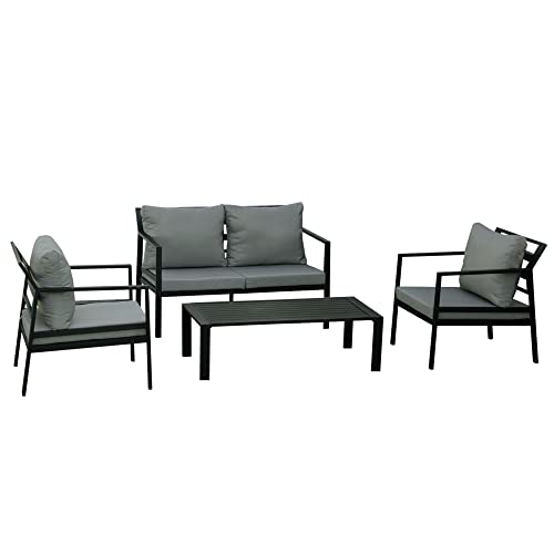Ensemble salon jardin canapés places fauteuils plateau latte...