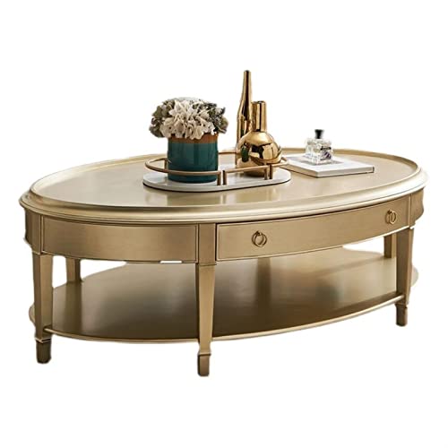 Table basse ovale en bois massif avec tiroir et étagère, pla...