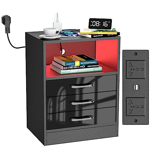 VILOL Tableau de Chevet LED, Table d'Appoint Noir, Tables de...