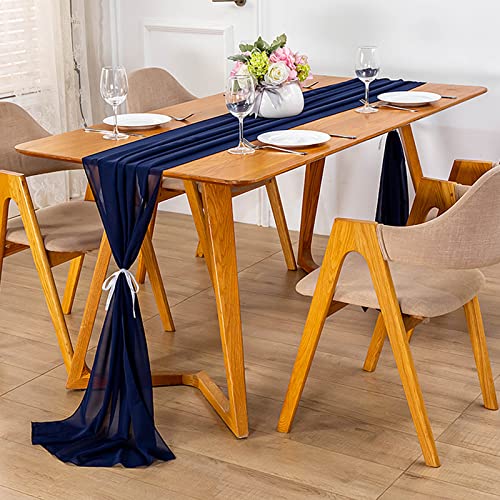 Chemin de Table Soie Mousseline 300x30 Bleu Foncé