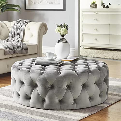 Tabouret Repose-Pieds Ottoman Velours Peluche Ronde Moderne...